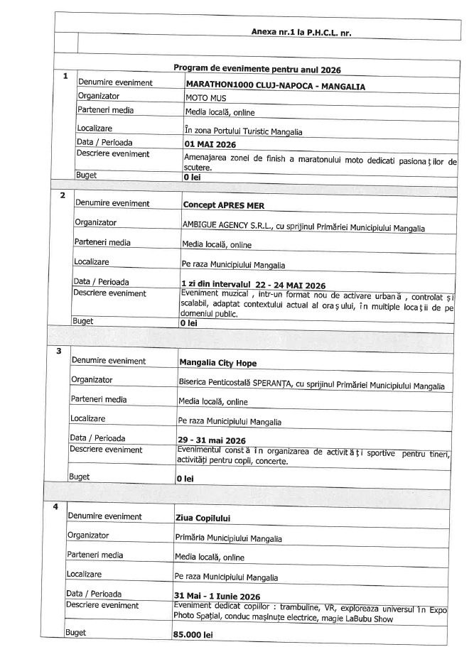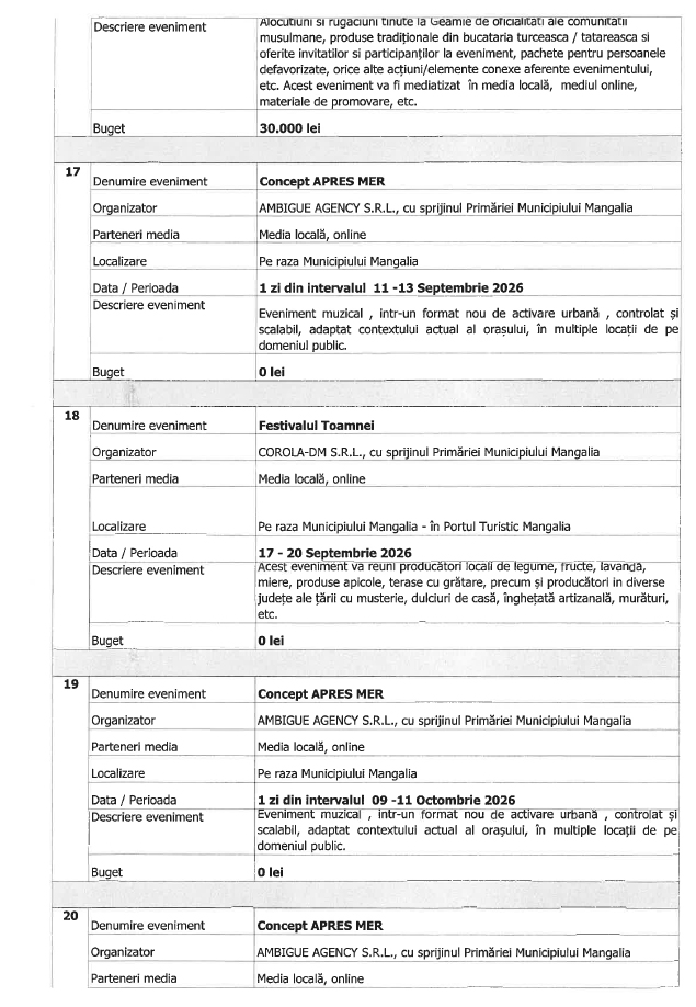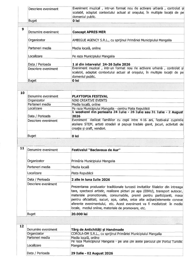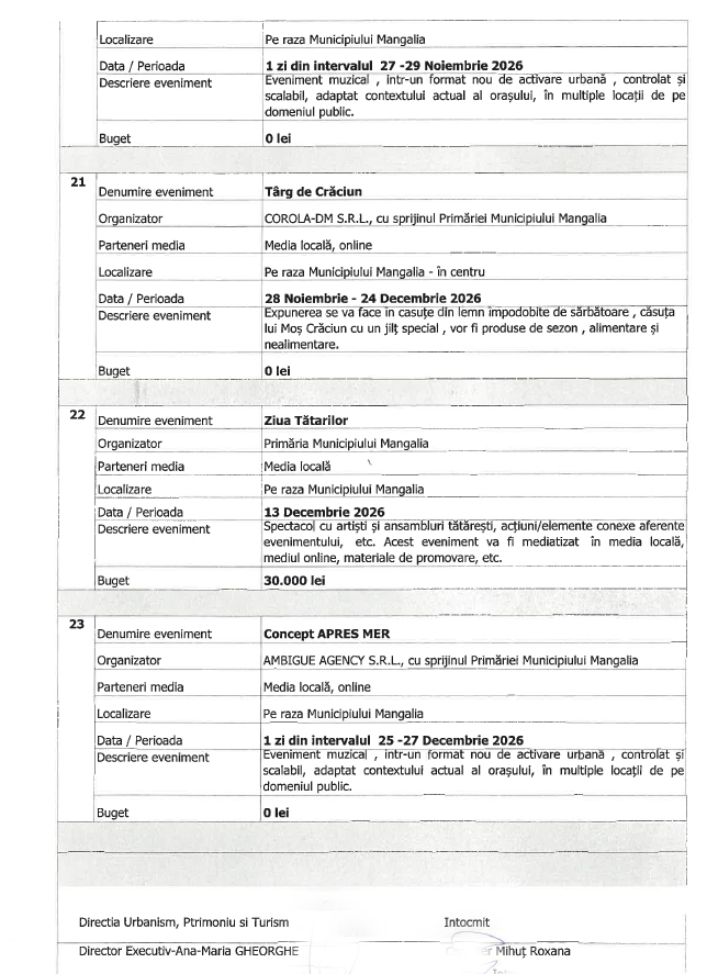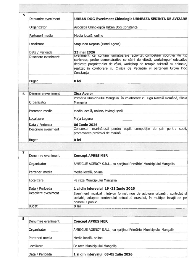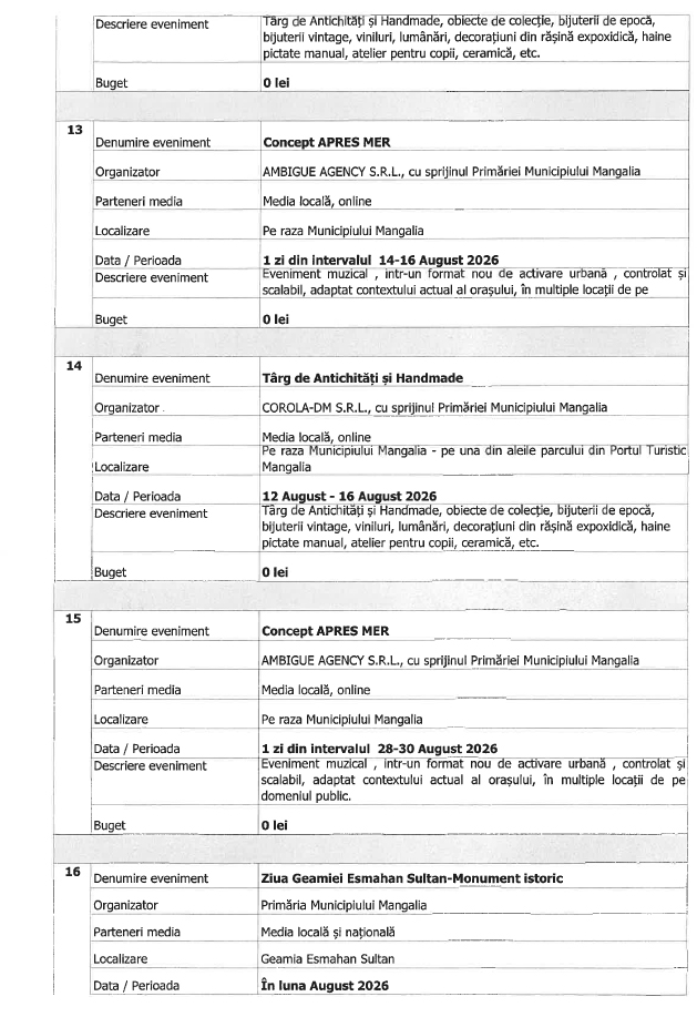 Trebuie precizat că vorbim aici de lista de evenimente organizate de Primăria Mangalia.