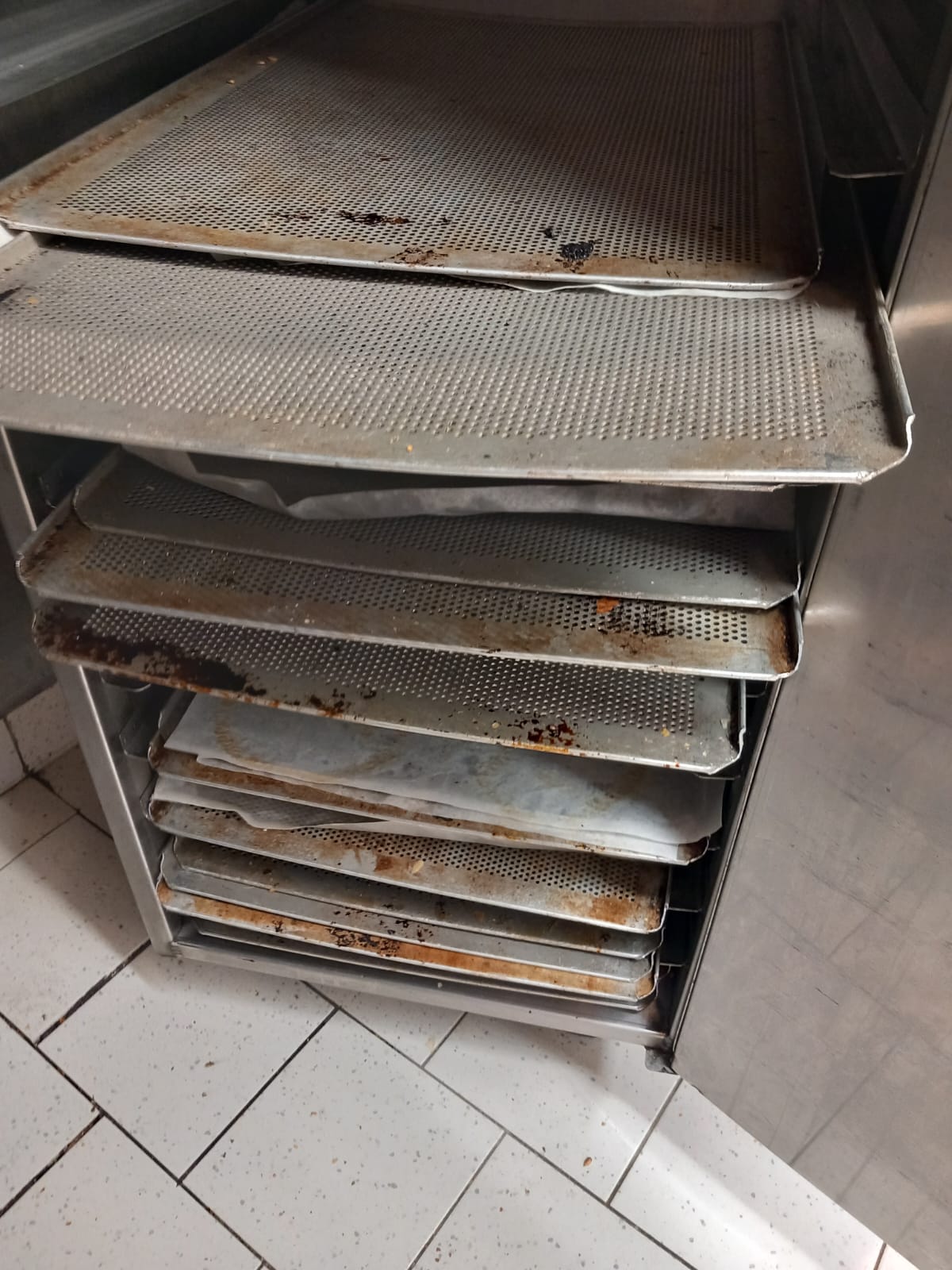 – utilizarea unor cuptoare neigienizate, fiind refolosită hârtia de copt în zona de prestare a serviciilor de brutărie/patiserie